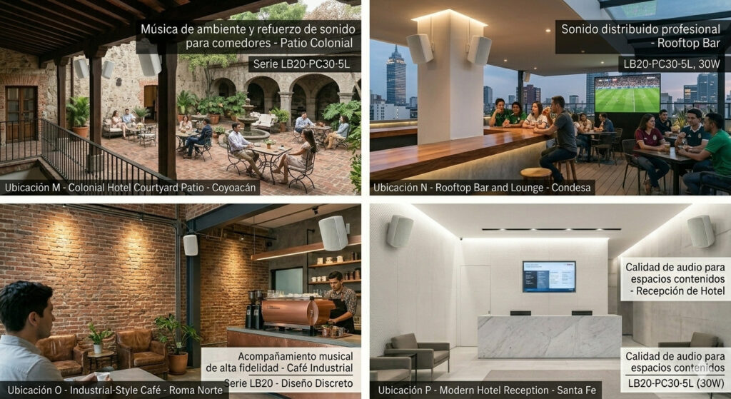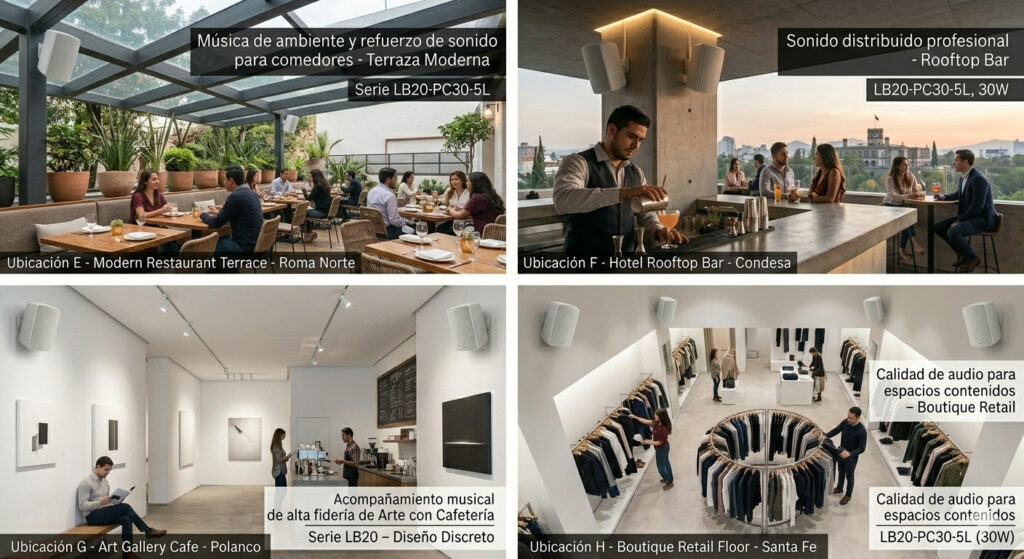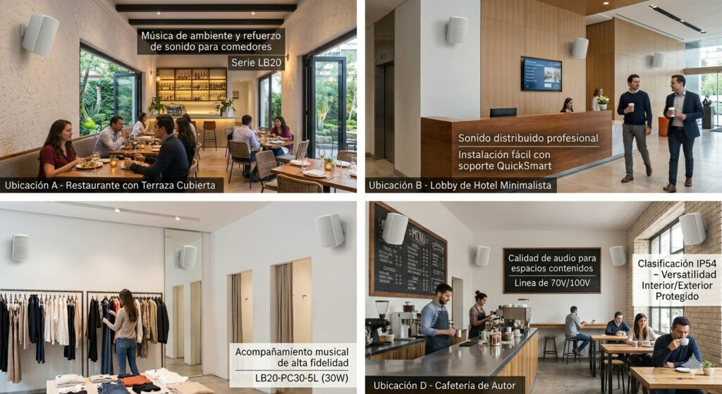 En restaurantes pequeños, el audio distribuido puede complementar la experiencia sin interferir en la conversación entre mesas.